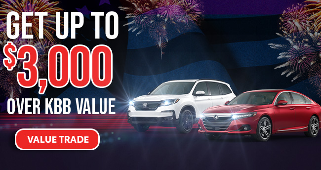Trade-in credit is valid only with approved credit. Not all buyers or vehicles will qualify. Must be a vehicle that can be retailed, non-wholesale unit. Some restrictions may apply. Trade-In credit must be used toward the purchase or lease of a brand-new vehicle from dealer stock. Less .20 per mile and reconditioning cost toward trade-in. Vehicle must pass dealership inspection. Internal and external damage, mechanical condition, excess mileage, and extenuating factors may affect final offer. See dealer for details. See also kbb.com for more details on Kelley Blue Book. Expires 7/31/2022.