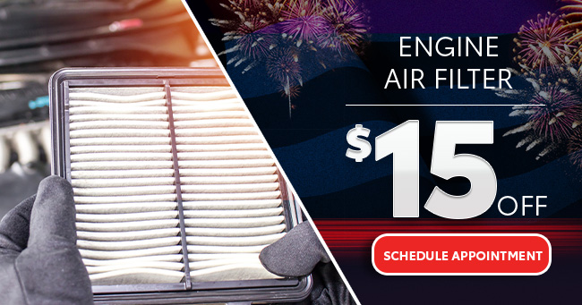 Engine Air Filter | $15 off regular price $36.95. Toyota Genuine Part. Factory-trained technician installed. Applies to most makes & models. Must present coupon at time of purchase. Cannot be combined and is not valid with any other coupons. One per customer. No cash value. Shop supplies and sales tax additional. Cannot be used at Collision Center. Offer ends 7/31/22.